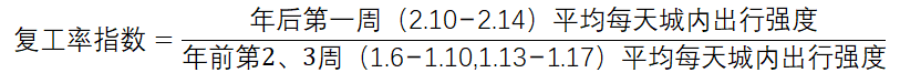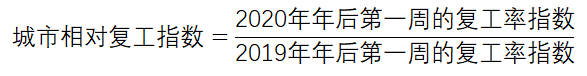 为了排除这一因素,我们再用每个城市的今年和去年做同期复工率比较,因此就有以下这个公式: