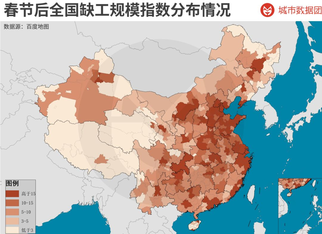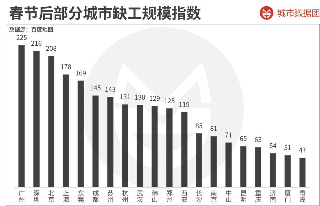 (说明:数据来源为百度地图。缺工规模指数不等于实际缺工规模,但可以近似代表大体缺工的规模程度。)