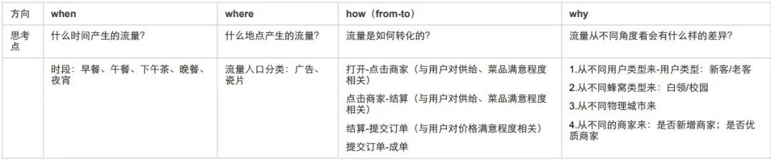 基于外卖流量分配为例,截取部分指标维度矩阵如下: