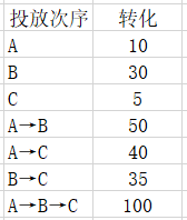 B投放后接着投放C形成方案S,C投放后接着投放A形成方案S,即B→C→A