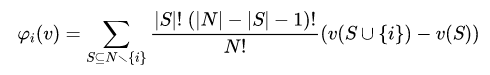 Shapley Values的原理是基于联合博弈论(coalitional game theory)的理论。Shapley Value的计算公式表达式如下所示: