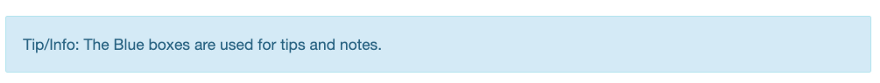 <b>Tip:</b> Use blue boxes (alert-info) for tips and notes.