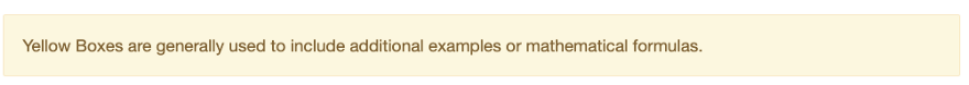 <b>Example:</b> Yellow Boxes are generally used to include additional examples or mathematical formulas.
