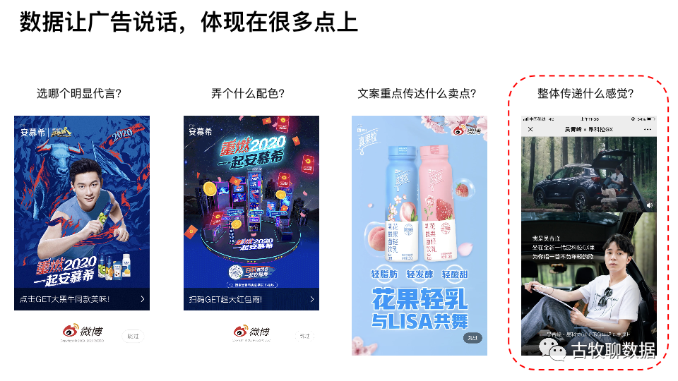 对数据应用感兴趣的朋友们好~今天古牧君通过一个小示例,简单介绍下在品牌广告的创意阶段,数据能发挥的作用。为什么不挑程序化广告而非要说品牌广告这种看起来有点儿传统的东西呢?一来因为程序化广告没深入做过,二来也想通过这个示例,阐述一个小观点:数据不是用来替代创意或决策的,他们应该是兼容的
