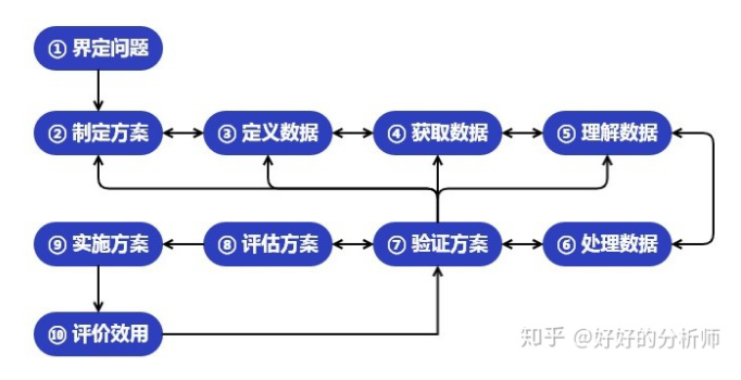 ⑩ 评价效用:收集他们的意见与反馈。分析报告是否给相关决策提供支撑,预测模型在下季度的准确度如何?
