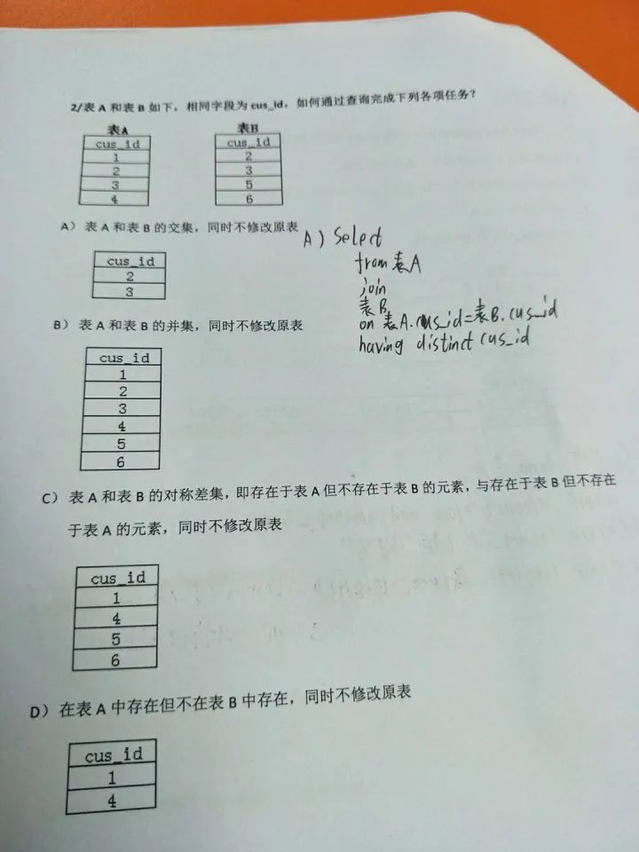 总之是比较简单的SQL笔试题了,当时很快就写完了。实际上这不是原题,不过我有印象就是考察这几个知识点,并且蛮简单的。