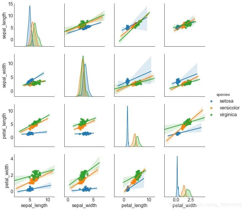如果你想了解两个变量如何相互改变,那么最合适的线就是要走的路。下图显示了数据中各组之间最佳拟合线的差异。要禁用分组并仅为整个数据集绘制一条最佳拟合线,请从下面的调用中删除该参数。