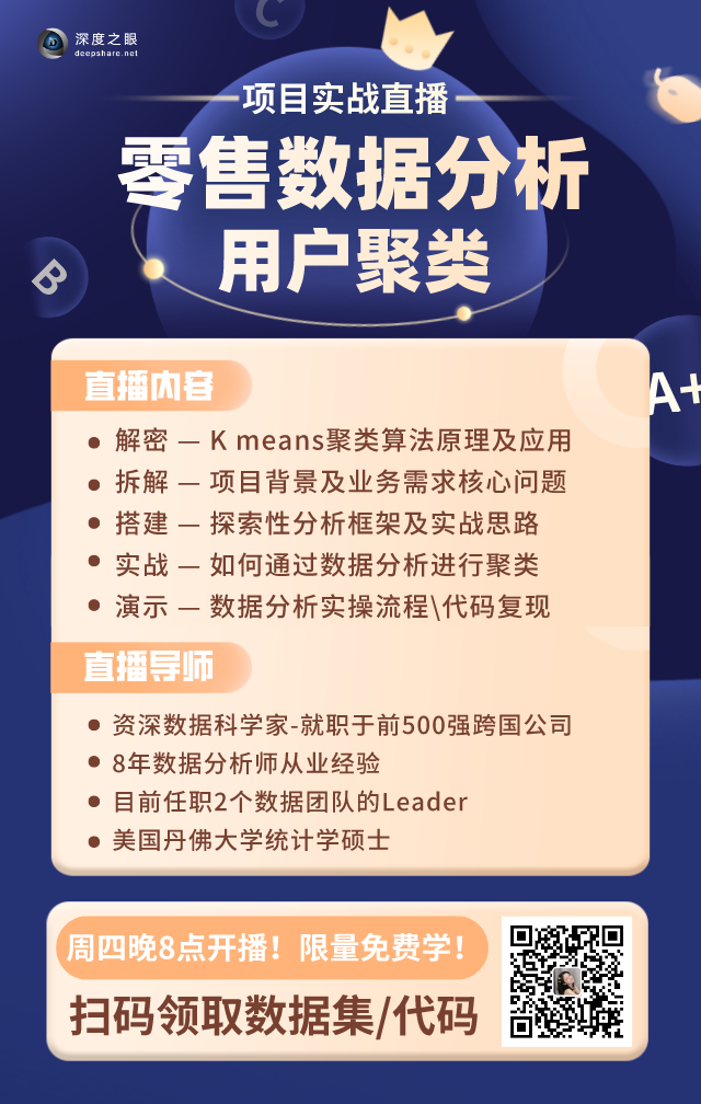 终于等到了!8年资深数据分析师“掏空式”分享,仅此一次!!想学的直接加好友领取直播地址和代码数据集,墙裂推荐↓↓↓