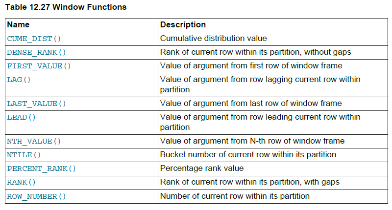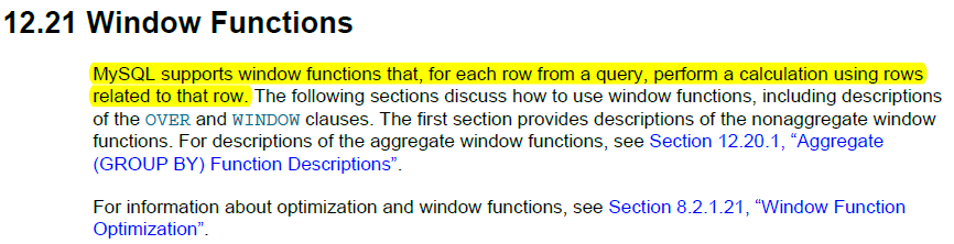 MySQL8.0官方手册中关于窗口函数的介绍