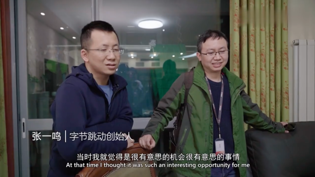 2021 年 3 月,张一鸣和梁汝波重新回到字节跳动的诞生地:北京市海淀区知春路锦秋家园的一间民房。创业之初,客厅被用作办公,「会议室」也只有五平方米,但对于张一鸣、梁汝波来说,空间有形、梦想无限:「从来没有觉得我们的办公条件会是个问题,关键是能创造有价值的东西。」