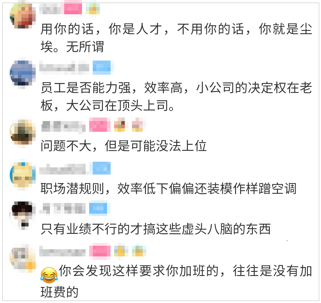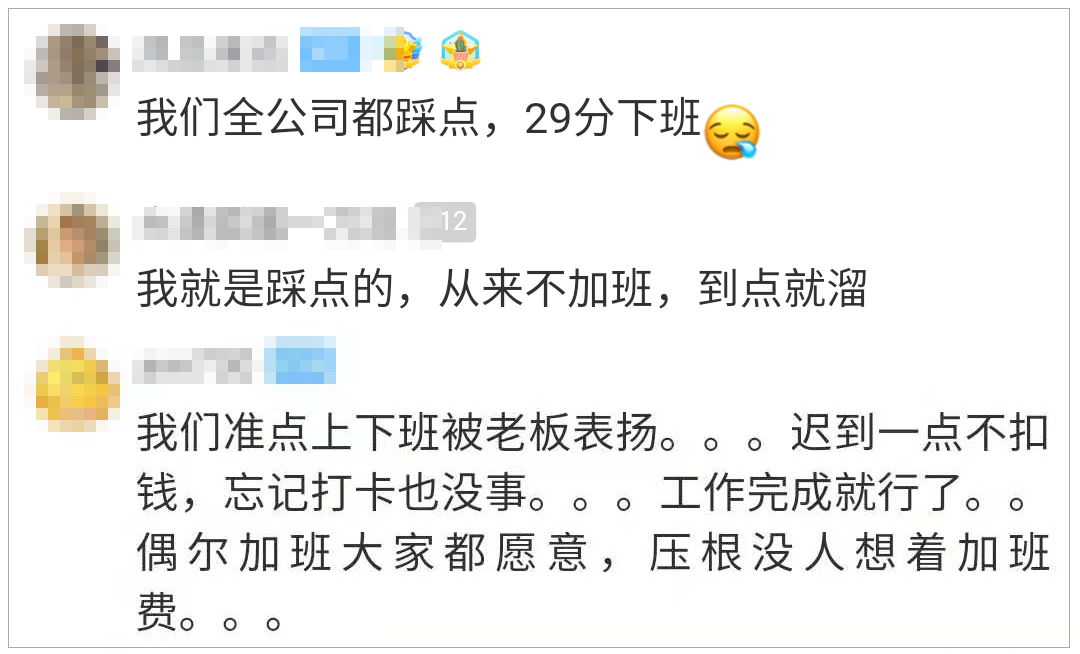 还有一群网友虽然抱着不认可的态度来的,但真的让很多网友酸了:我们部门经理也踩点下班,大家一起踩点下班挺好。
