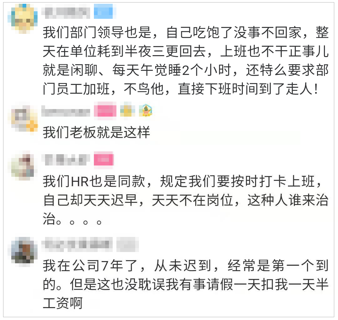 @网友A:准点下班,被说早退,因为打卡准点说明你提早下来了