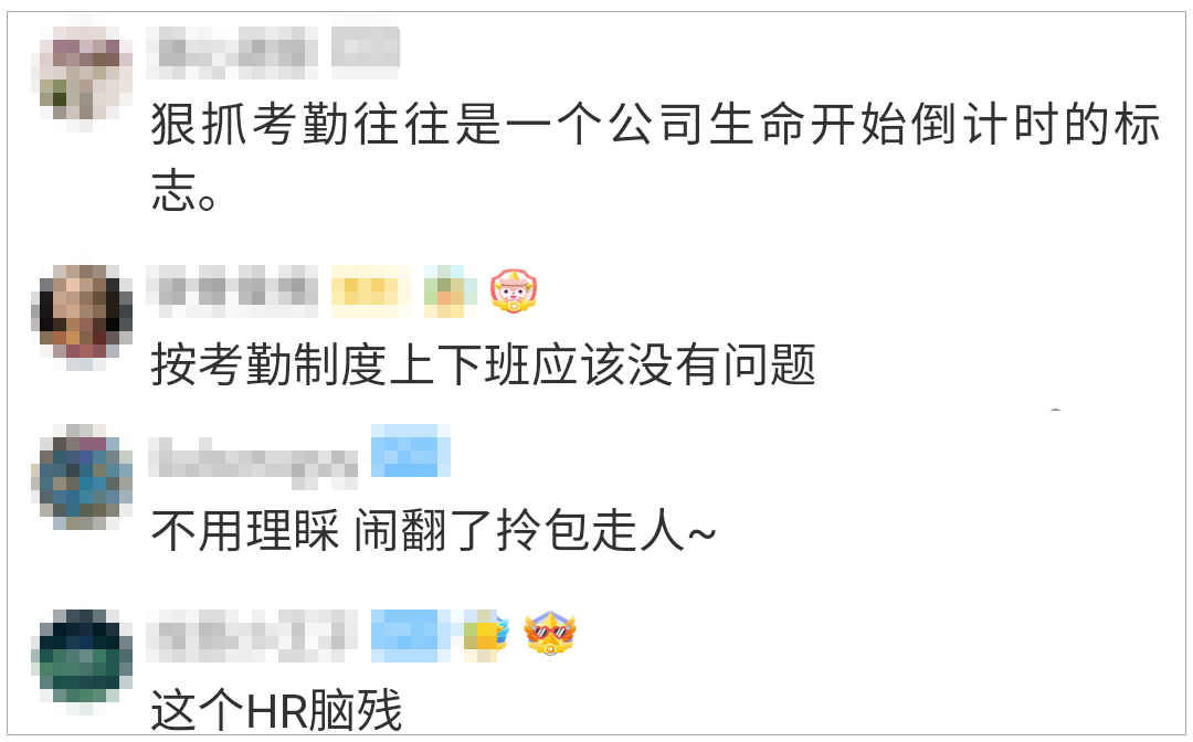 @网友G:记住,一般公司快不行了,做的第一件事就是抓劳动纪律。