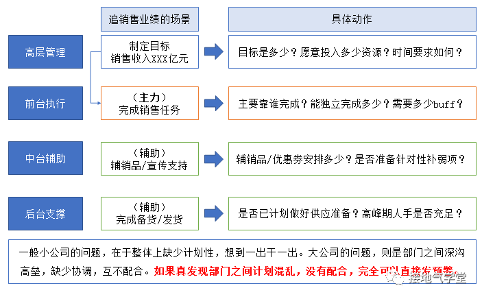 做执行阶段-作为辅助的供应链:达标率太好的情况下,是否购货充足?达标率太差的情况下,是否有积压风险?如果销售表现好,但关联的辅助部门马上面临缺货风险,此时也要及时预警!