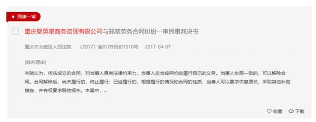 重庆聚英星商务咨询有限公司发布了一个兼职之后,我带着一个人普通人的好奇心用全国企业信用信息公示系统、中国裁判文书网、中国执行信息公开网和搜索引擎去验证了公司是否正常经营、是否有缴纳全职人员社保等。