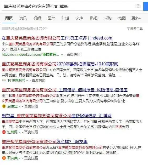 接着利用搜索引擎,搜一下有没有其他公司相关的负面新闻,可以使用关键词:“【公司名】 裁员”(或者其他你想找的关键词)