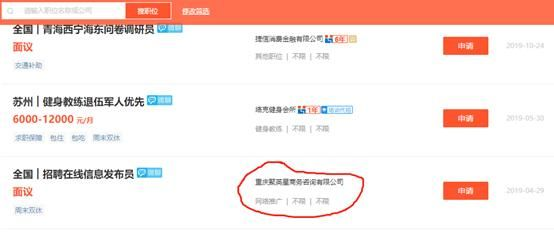 通过上面三个网站,基本能查到大部分需要的信息,也是天眼查、企查查的信息重要来源之三。搜集公司信息通常是有目的的,下面将以求职防坑为场景,手把手演示如何使用这三个网站搜集公司的信息来帮助普通人求职。下面是在招聘网站里随便选的一家公司,记住这个公司名,这是一切梦开始的地方:重庆聚英星商务咨询有限公司。