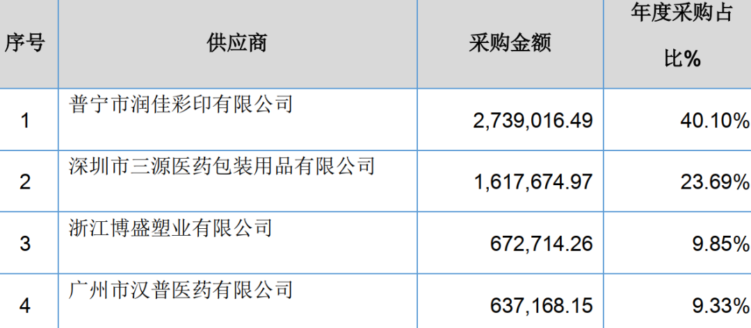网上也有销售,一瓶药水在30元左右,查看供应商情况,发现公司在包装上花去了74%的采购金额,只有大概15%花在原料药采购上。