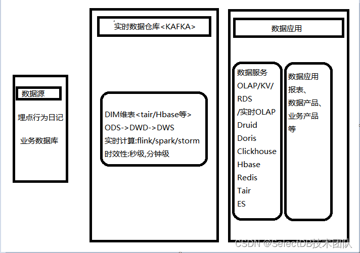 数据源:这是实时数仓架构的起点,可以包括各种在线交易系统、业务数据库、日志、传感器数据等。数据源可以是结构化的,如关系型数据库中的数据表,也可以是非结构化的,如日志文件或社交媒体数据流。