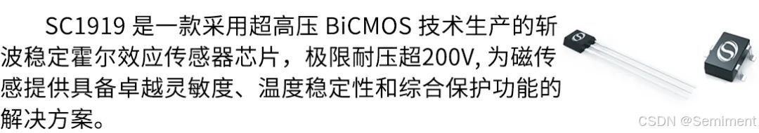 SC1919主要的应用有:新能源汽车48V系统位置检测、阀门及电磁阀状态检测、无刷电机位置传感器、接近开关、转速表。