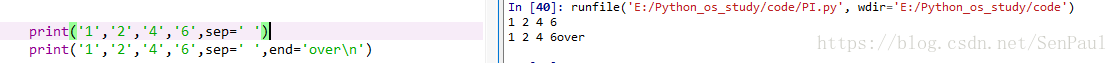 sep: 表示输出的多个参数以什么方式隔开,默认为空格 ' '