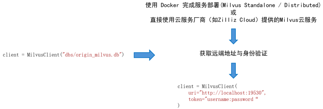 ⚒️milvus:使用 Milvus 存储数据,支持海量数据的检索和存储,支持分布式部署,更适合生产级应用,更多 Milvus 相关信息可以参考 Milvus 官方文档;