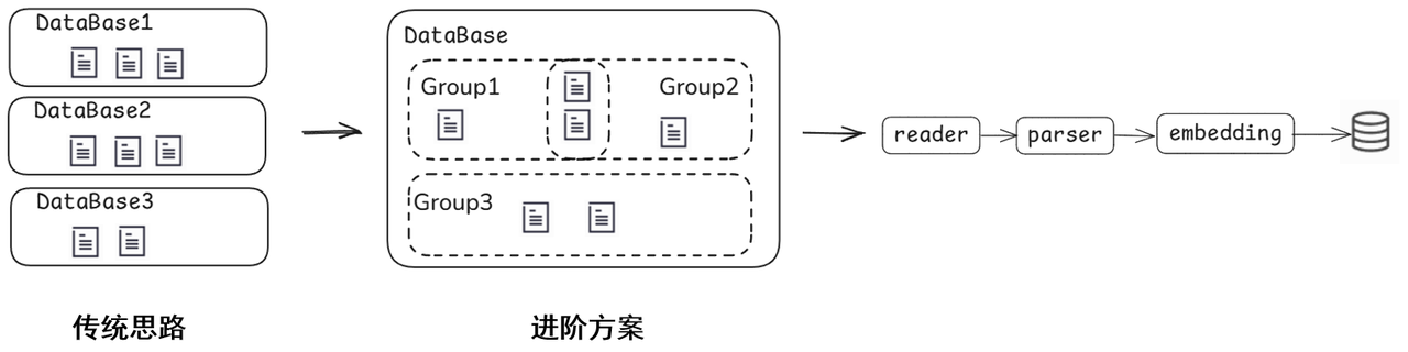 例如,在同一知识库存储内,支持利用文档管理组功能进行分组管理,同一文档只需解析一次。