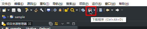 3.2 如图1.3.3所示,点击下载程序按钮,快捷键Ctrl + Alt + D,进行程序下载,下载前请连接开发板,并确保ST-Link驱动、串口驱动OK。