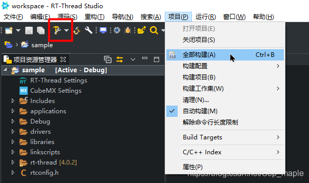 3.1 如图1.3.1所示,使用快捷键Ctrl + B或者功能按钮,对项目进行编译,编译输出信息如图1.3.2所示。