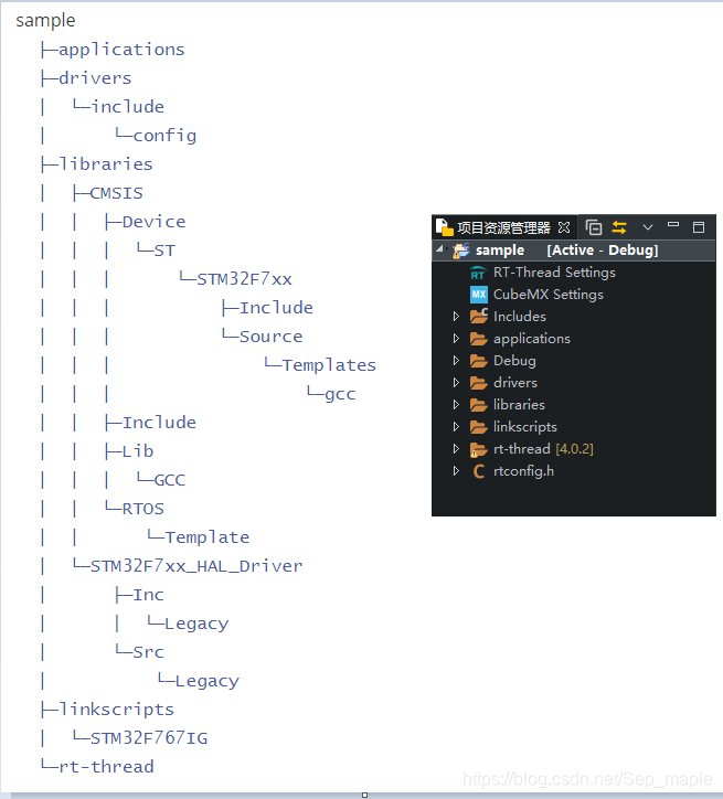 2.1 图1.2.1是工程中的目录树结构,左边是通过tree命令得到的文件夹树形结构(一些项目配置信息未显示),右边是工程管理器中显示的文件结构;