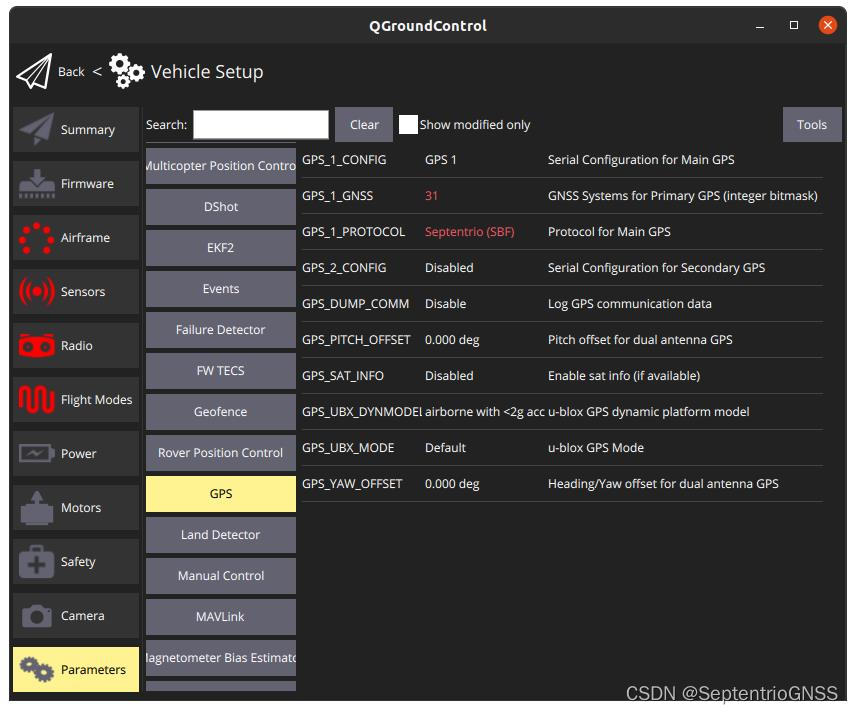 默认情况下,当所有参数正确时,PX4 会自动设置连接的接收器。可以通过设置GPS_AUTO_CONFIG为 来禁用此Disabled功能,当接收器用于除单独自动驾驶仪之外的其他用途时,这会很有用。在这种情况下,最简单的方法可能是首先将接收器连接到自动驾驶仪,让自动驾驶仪对其进行设置,然后禁用自动配置,以免覆盖自动驾驶仪之上的自定义配置。