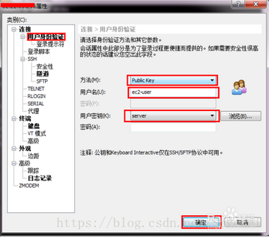“用户密钥”项的值是下拉框中选择上一步导入的PEM文件