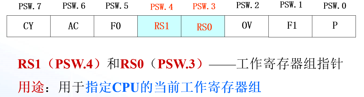 CPU 同一时间只能使用其中一组的 R0~R7,而 RS1 和 RS0 的作用就是 “指定当前使用哪一组”。