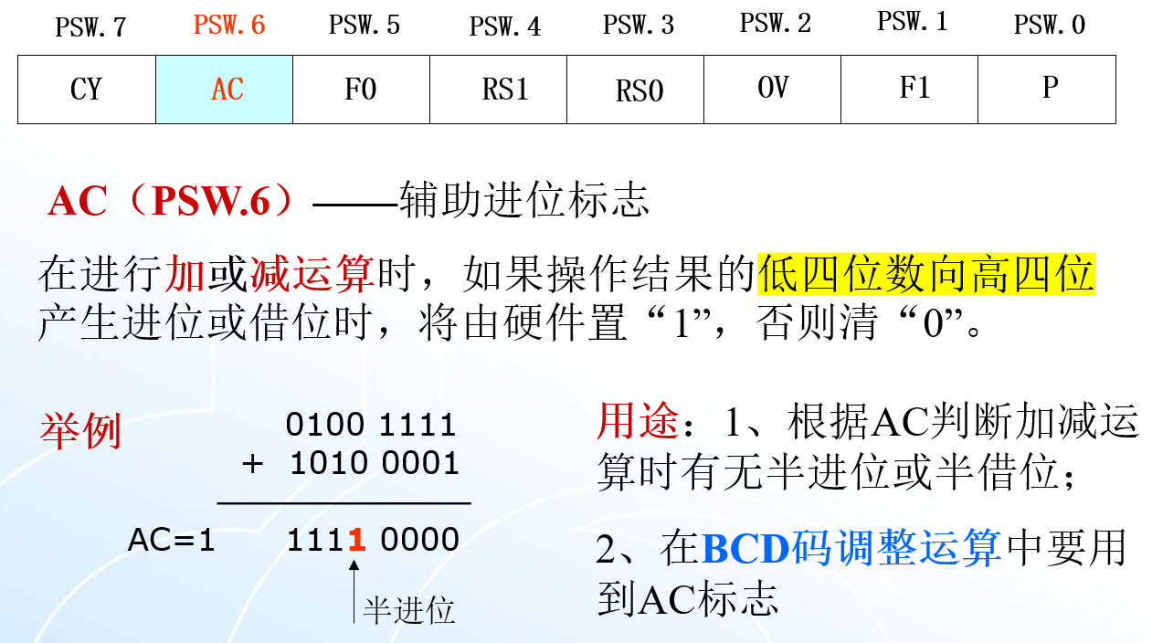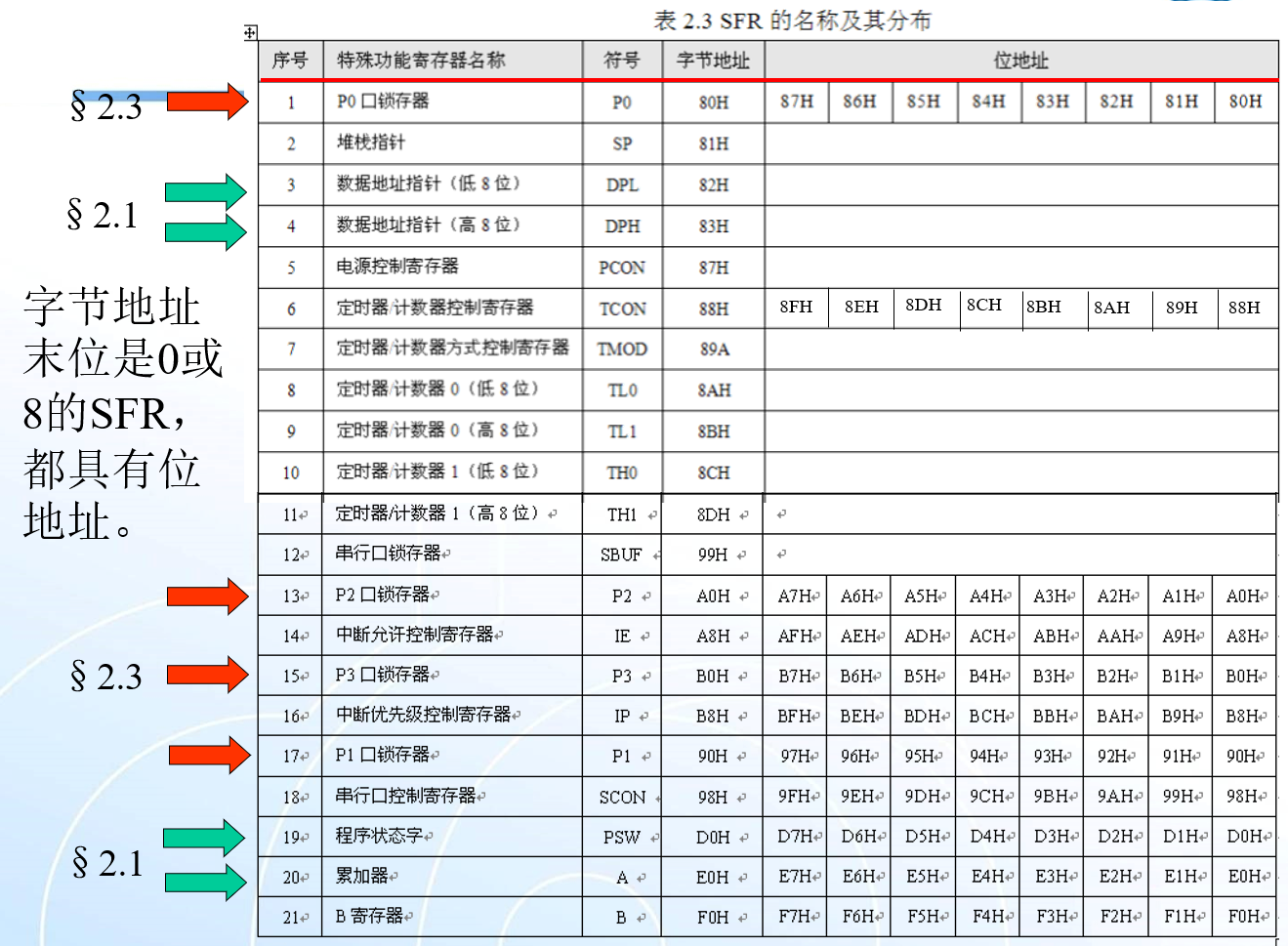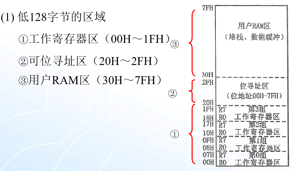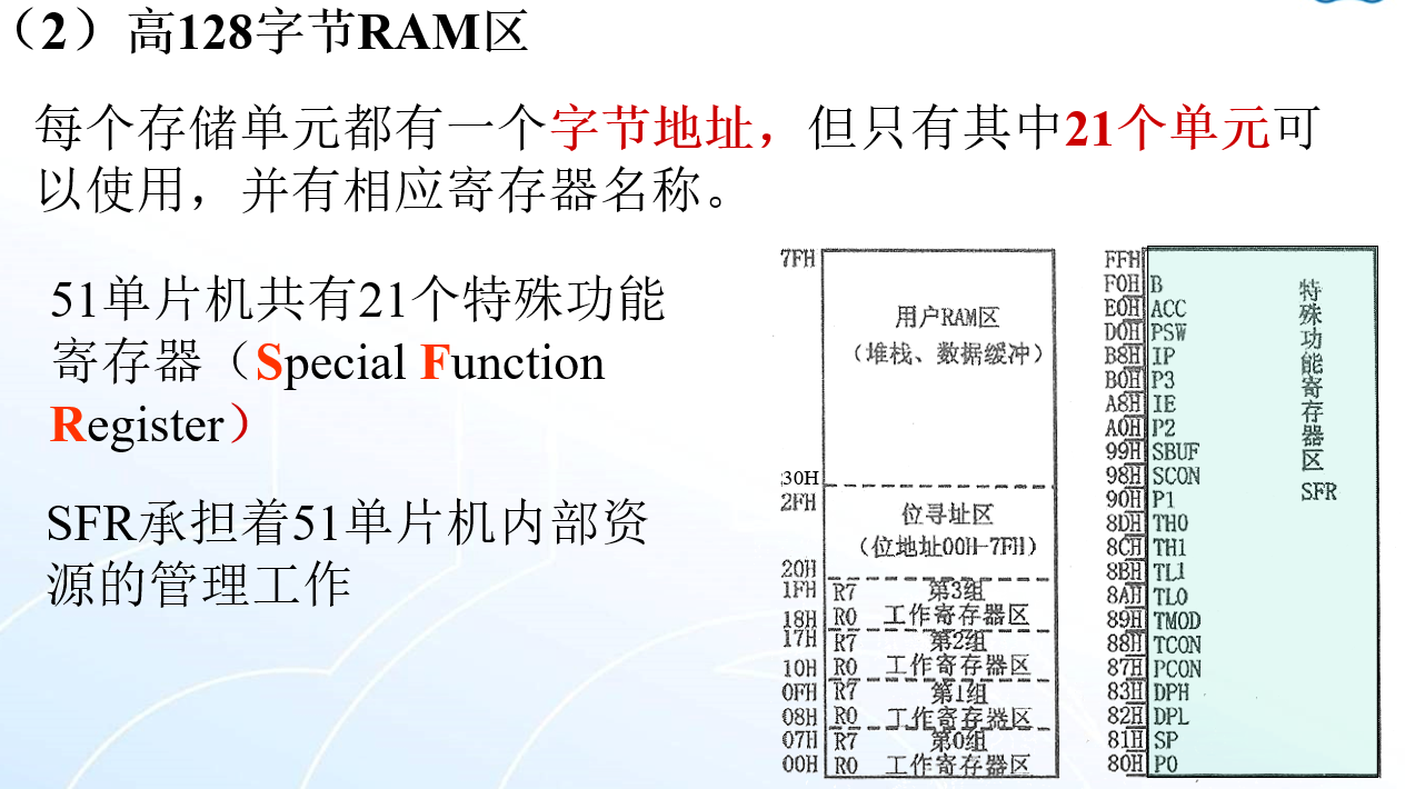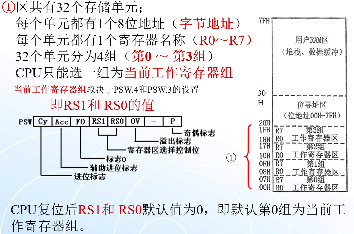 | 组别 | RS1 (PSW.4) | RS0 (PSW.3) | 对应R0~R7的物理地址 |