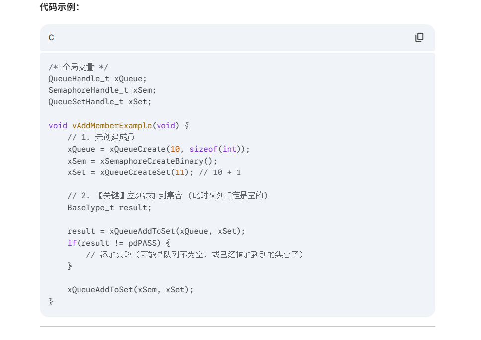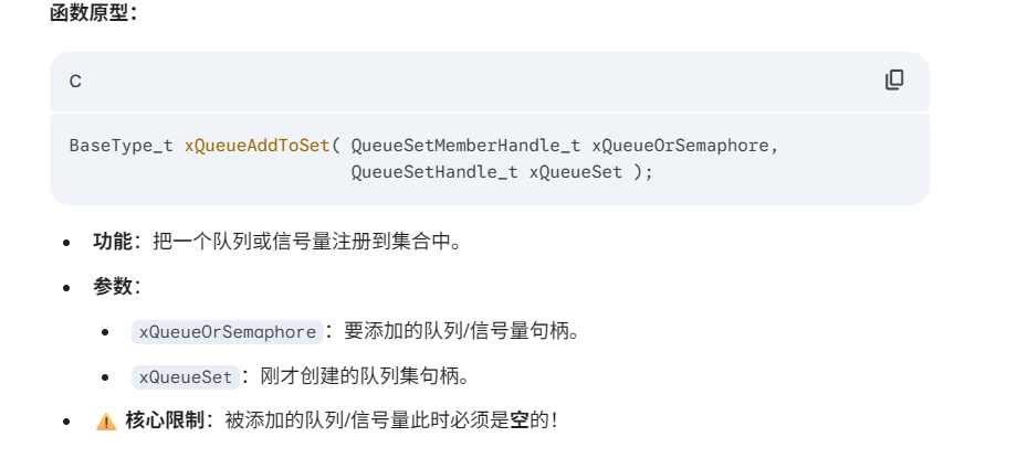 BaseType_t xQueueAddToSet( QueueSetMemberHandle_t xQueueOrSemaphore,
