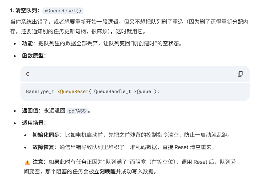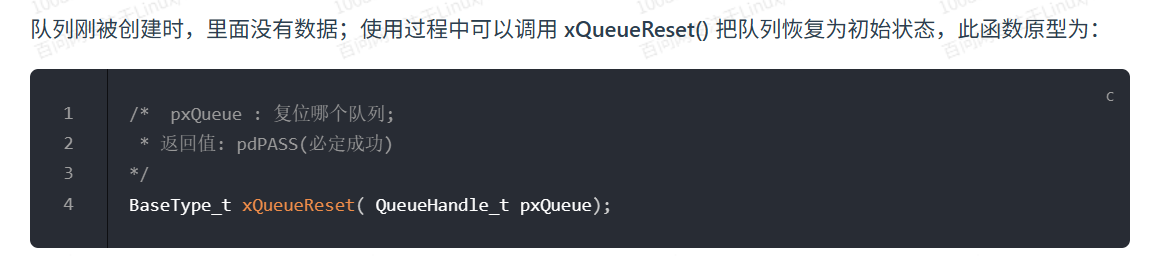 BaseType_t xQueueReset( QueueHandle_t xQueue );