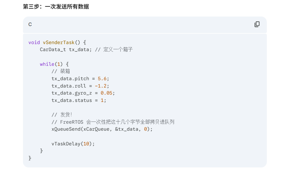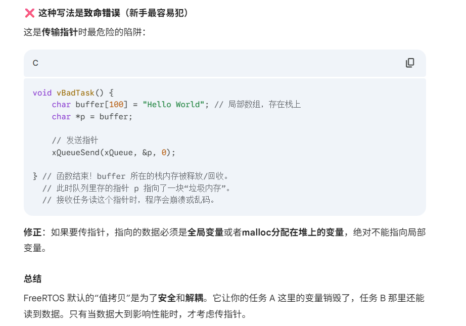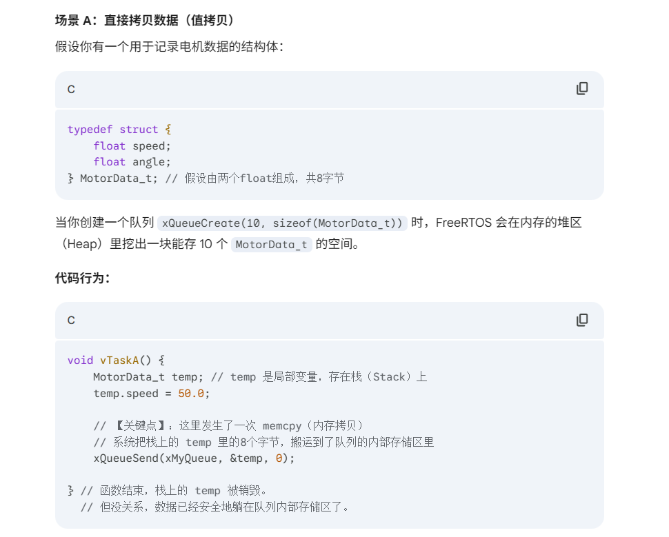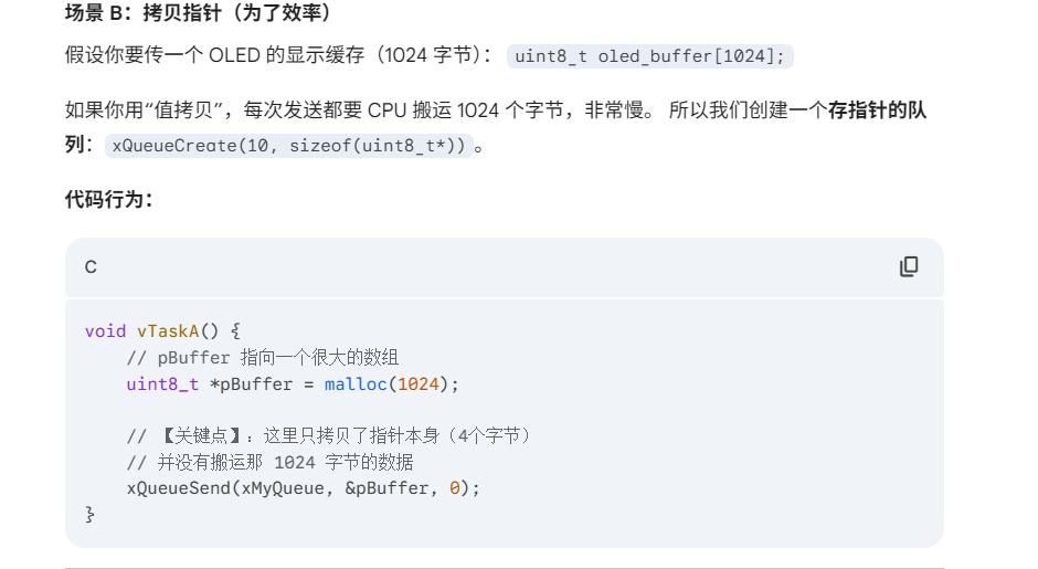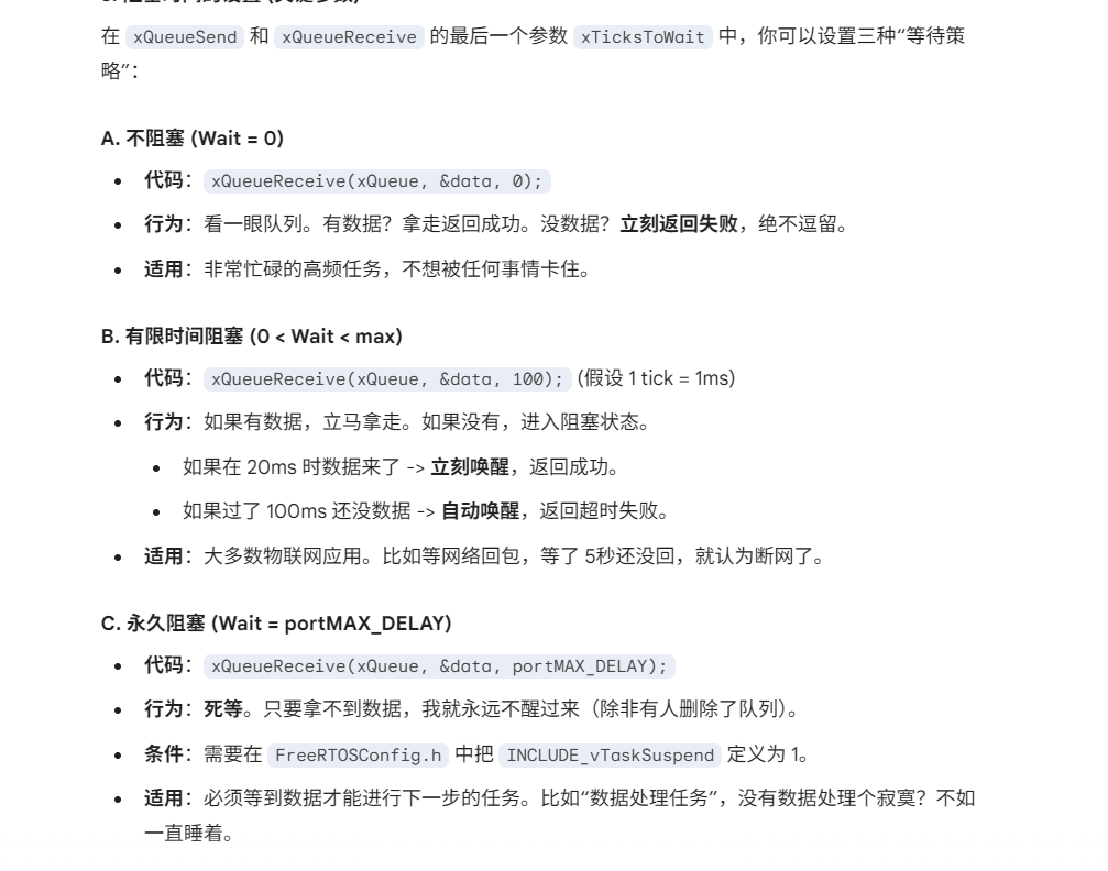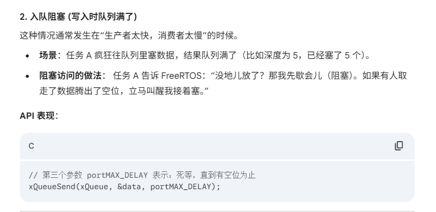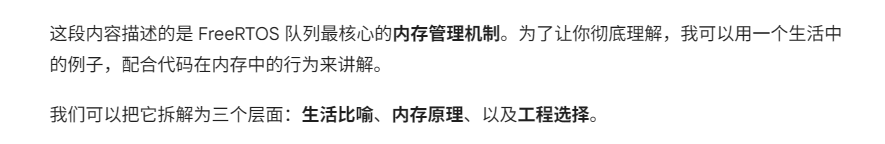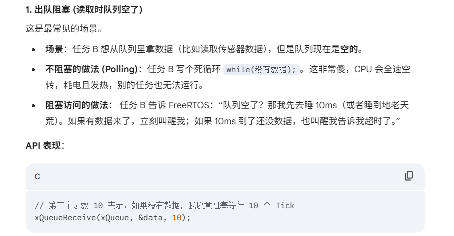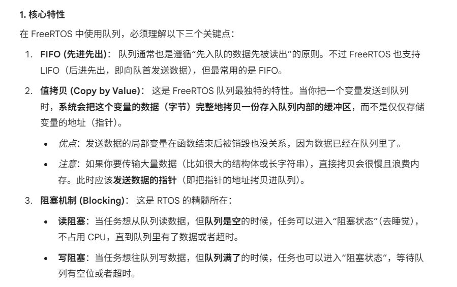 FreeRTOS 队列的核心特性设计非常巧妙,它是为了解决嵌入式系统中两个最头疼的问题:“数据怎么传才安全” 和 “任务怎么等才省电”。