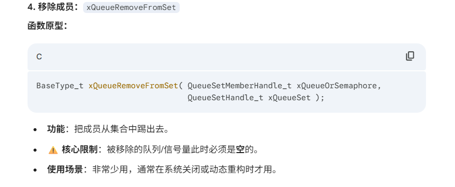 4. 移除成员:xQueueRemoveFromSet