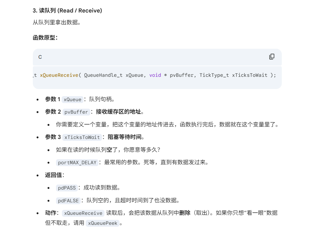 xQueueReceive:从队列接收数据