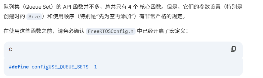 FreeRTOS 队列集合(Queue Sets)是一种机制,用于同时监听多个队列和信号量,以实现任务间的高效通信。