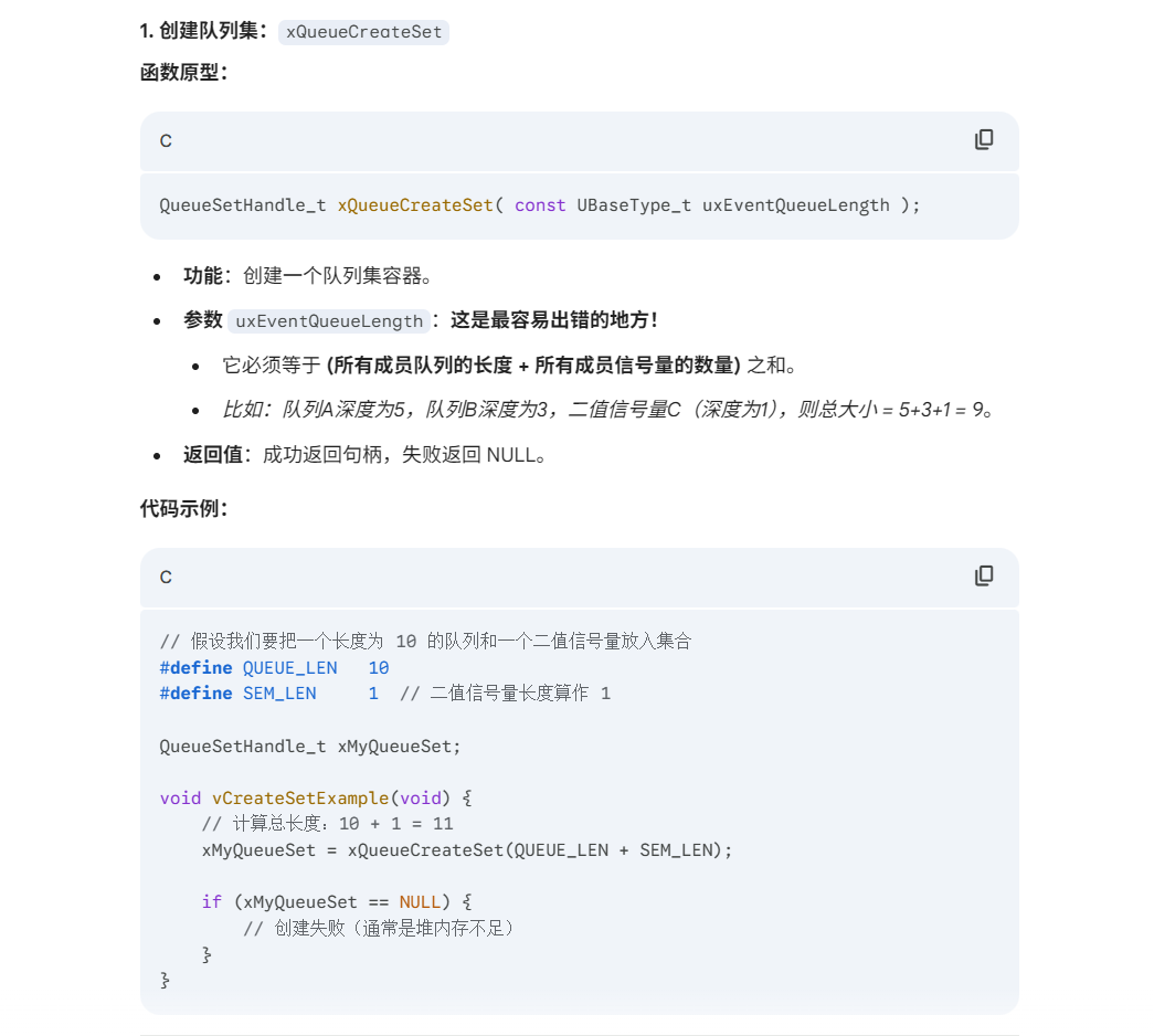 1. 创建队列集:xQueueCreateSet()