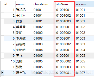 `stuNum` varchar(40) DEFAULT NULL COMMENT '学生编号',