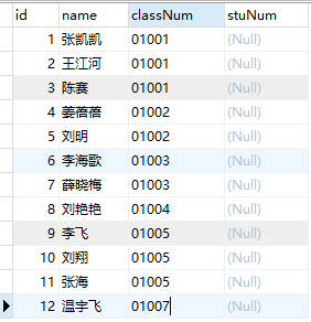 INSERT INTO `student` VALUES ('5', '刘明', '01002', null);