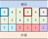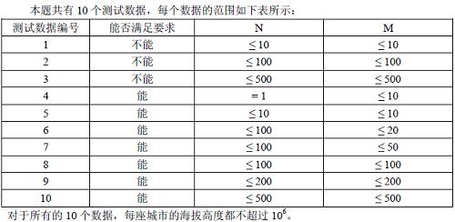 因此,只有与湖泊毗邻的第111 行的城市可以建造蓄水厂。而输水站的功能则是通过输水管线利用高度落差,将湖水从高处向低处输送。故一座城市能建造输水站的前提,是存在比它海拔更高且拥有公共边的相邻城市,已经建有水利设施。由于第NNN 行的城市靠近沙漠,是该国的干旱区,所以要求其中的每座城市都建有水利设施。那么,这个要求能否满足呢?如果能,请计算最少建造几个蓄水厂;如果不能,求干旱区中不可能建有水利设施的城市数目。