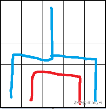 要做这道题,首先需要看出来一个性质:对于一个蓄水厂,它能够输水的干旱区城市一定是连续的,否则必定有干旱城市不能建水利设施。因为若存在一个蓄水厂能够输水的区域(下图蓝色部分)不连续,则必定存在一段高海拔城市(下图蓝色部分)阻断了输水,使得被其包围的部分都不能被输水: