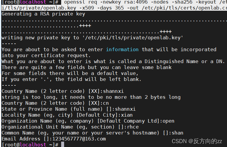 openssl req -newkey rsa:4096 -nodes -sha256 -keyout /etc/pki/tls/private/openlab.key -x509 -days 365 -out /etc/pki/tls/certs/openlab.crt