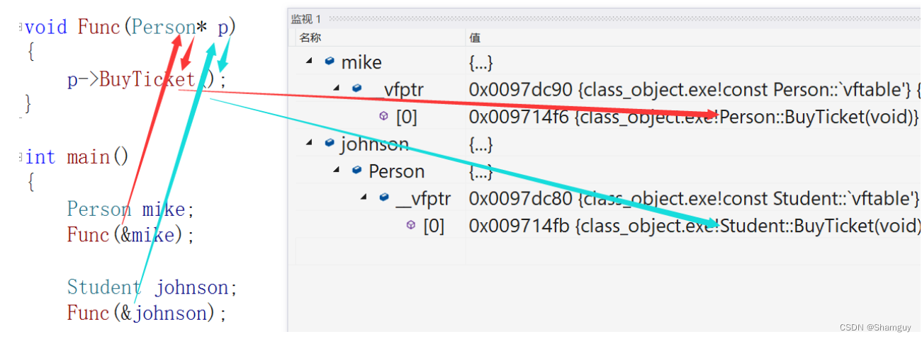 1.2、派生类中有一个跟基类完全相同的虚函数(即派生类虚函数与基类虚函数的返回值类型、函数名、参数列表完全相同)