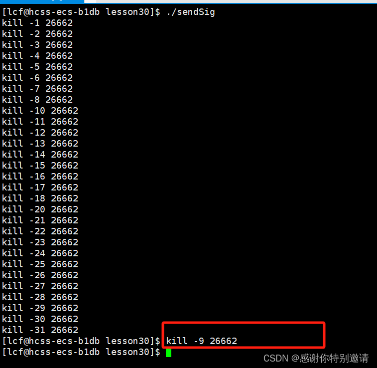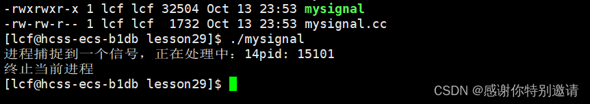 结果如预测的一样,闹钟时间到了,也如实的给该进程发送信号了,我们也将该信号捕捉了自定义了信号处理方法。