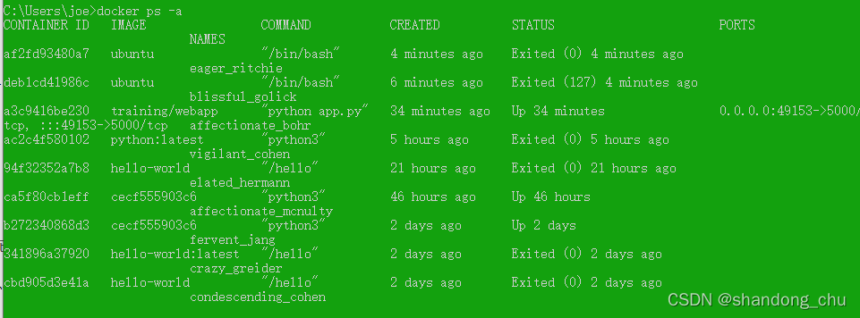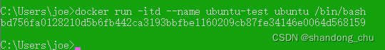C:\Users\joe>docker run -itd --name ubuntu-test ubuntu /bin/bash