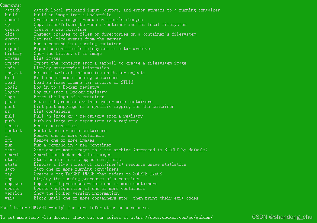 可以通过命令 docker command --help 更深入的了解指定的 Docker 命令使用方法。